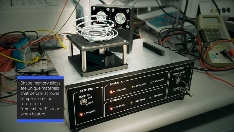 打印出具有双向形状记忆功能的镍钛合金,这种合金可以通过加热和冷却来交替改变两种记忆形状。在 APL 力量投射部门的电气工程师 Kyle
