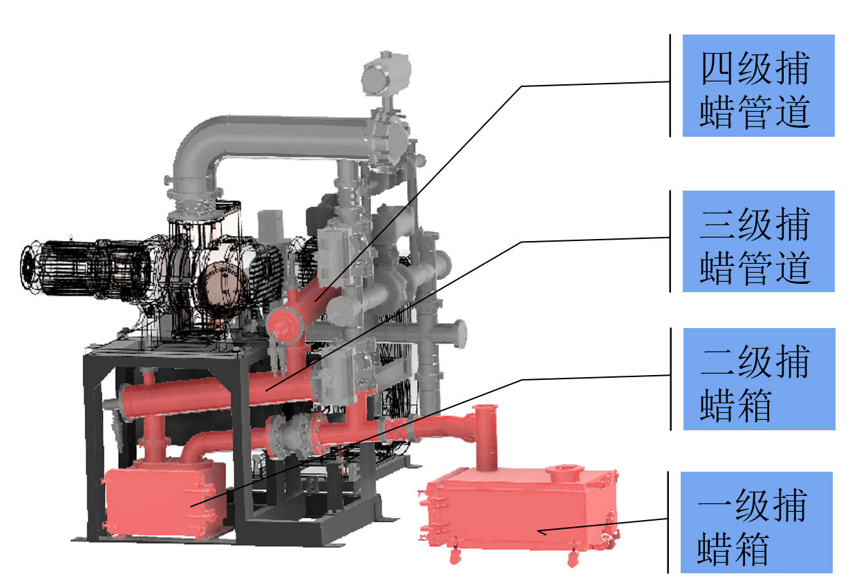 星特烁创新性地采用了四级捕蜡管道设计,有效防止蜡蒸气返流,确保炉内气氛纯净,显著减少炉内产品的增碳问题。该设计包括一级捕蜡箱、二级捕蜡箱、三级捕蜡管道和四级捕蜡管道,形成完整的蜡气捕捉系统。