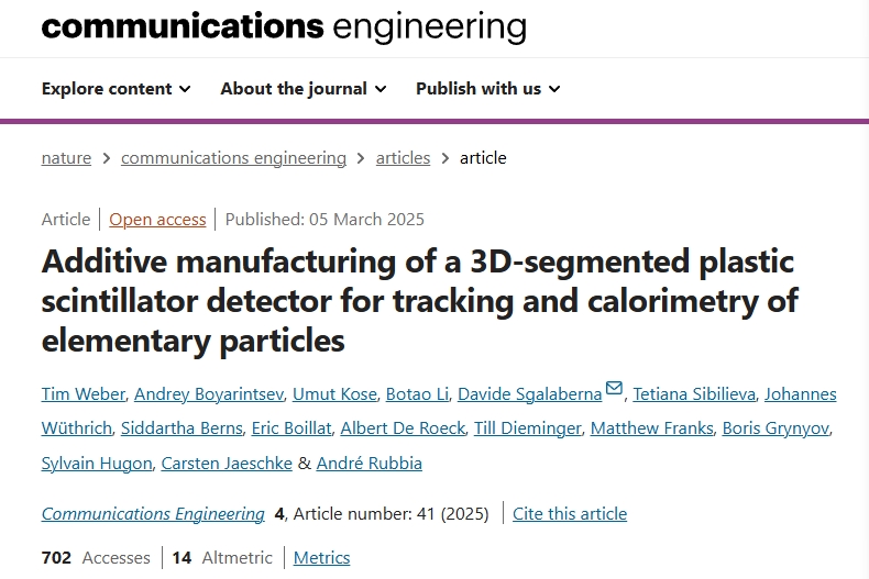 构建探测器模块通常需要大量劳动力。Davide Sgalaberna教授和André Rubbia教授领导的国际团队探讨了3D打印技术是否可以简化这一过程。他们的研究成果发表在《通信工程》杂志上,介绍了一种完全通过增材制造技术制造的PS探测器。