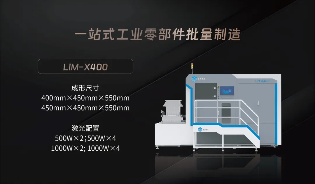 LiM-X400拥有两种可选配置分别是400mm×450mm×550mm(W×D×H)双激光和450mm×450mm×550mm(W×D×H)四激光,可根据需求灵活配置500W或1000W激光器,适用于航空航天、能源动力、汽车制造、模具制造等领域零部件的一体成形。