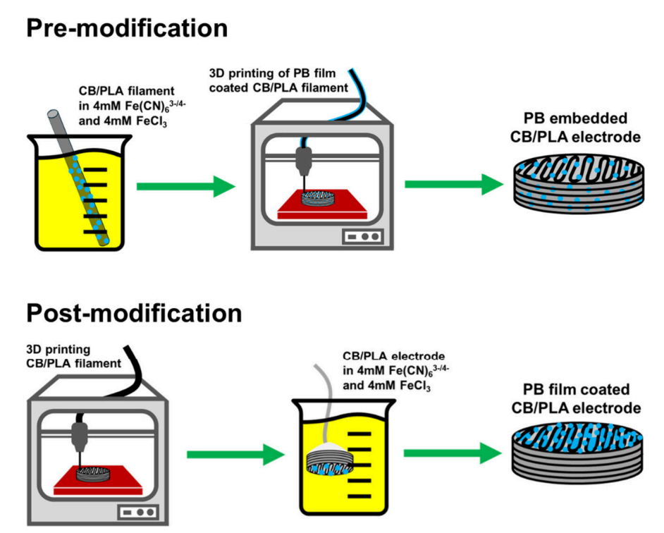 Electrodes Crafted by Pre-Modification of 3D Printable