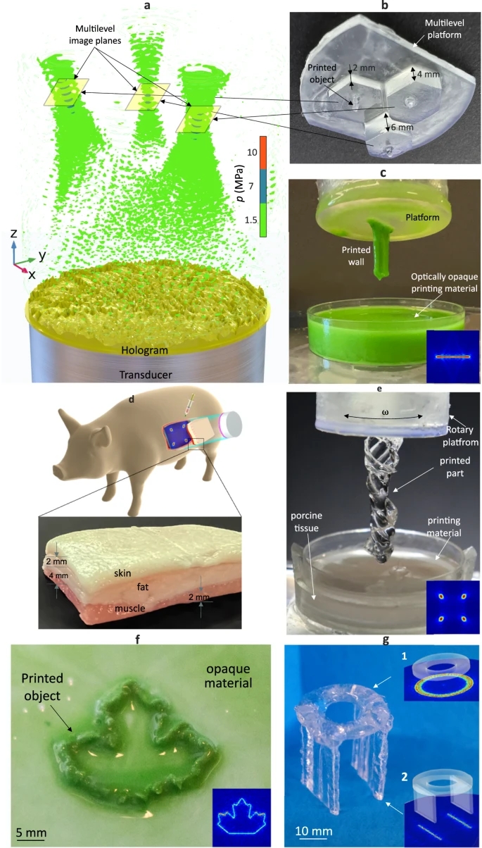 Habibi表示,这项技术可通过高声压声波远程投射全息图像,并利用声波搅动聚合物材料(如树脂),无需切口即可精确打印出固体结构,从而为骨折修复开辟了新的可能性。