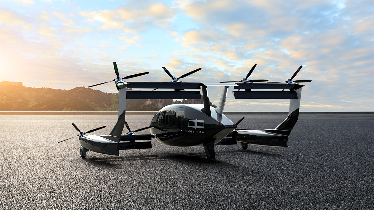 △AMSLAero 的 Vertiia 旨在成为世界上最高效的远程、零排放电动垂直起降飞机。照片来自 Conflux Technology。