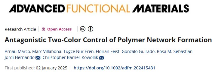 新方法以题为“Antagonistic Two-Color Control ofPolymer Network Formation”的论文发表在《先进功能材料》上。论文介绍了一种双波长控制方法,可显著提高精度和材料控制。