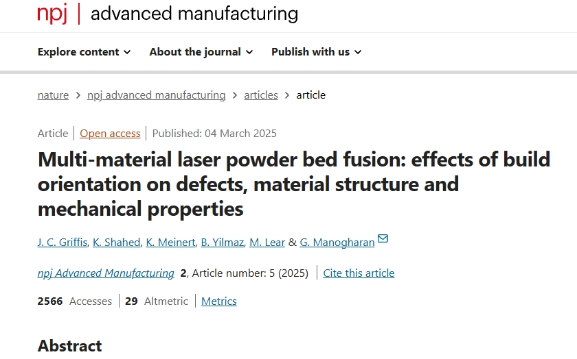 在未来的研究方向上,团队计划利用过程监控系统进一步提升3D打印工艺的稳定性与可重复性,使这一工艺更适合工业化生产。同时,他们还将探索Inconel合金和铜等更多金属材料组合在多材料LPBF工艺中的应用潜力。