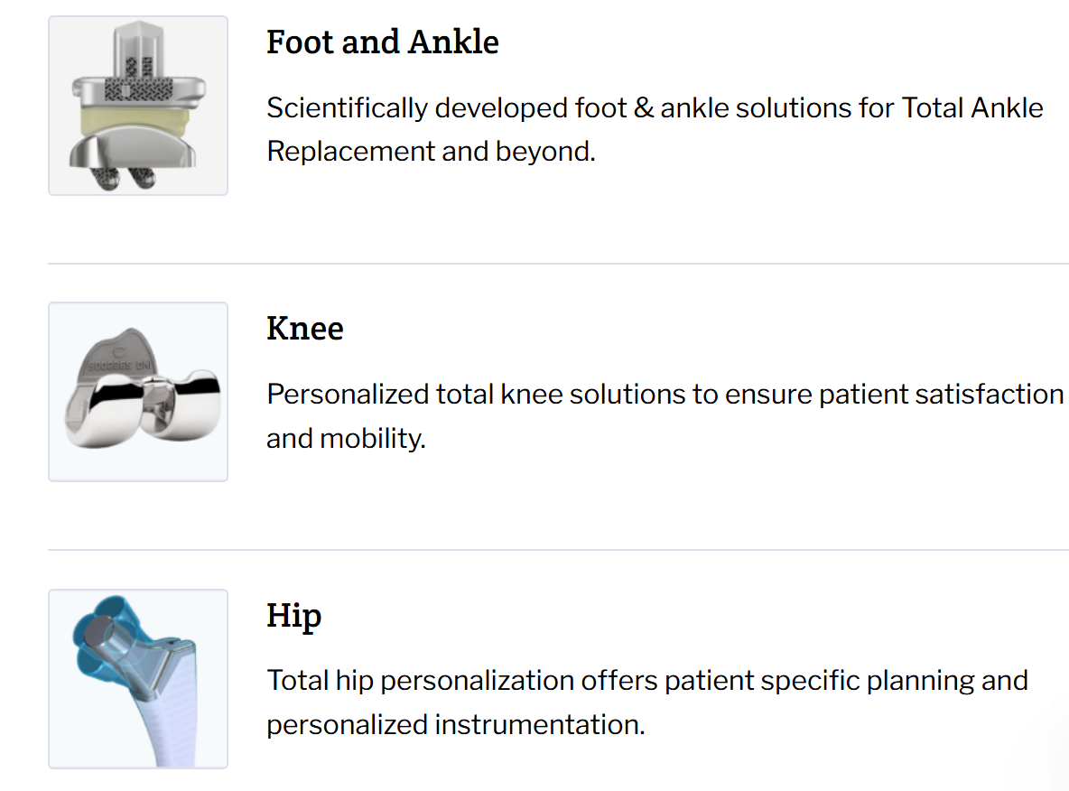 这是一款针对前入路手术优化的全踝关节系统,提供了更高的手术灵活性和个性化贴合度。产品已于去年年底获得FDA 510(k)批准,展示了restor3d在踝关节领域的技术实力。