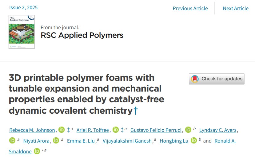 dynamiccovalent chemistry”的论文发表在《RSC Applied Polymers》期刊上,重点是制造一种可以 3D