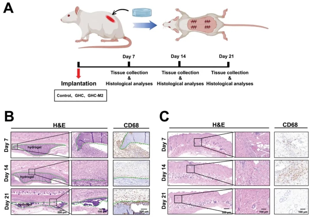 3. GHCM水凝胶的体内生物相容性和降解