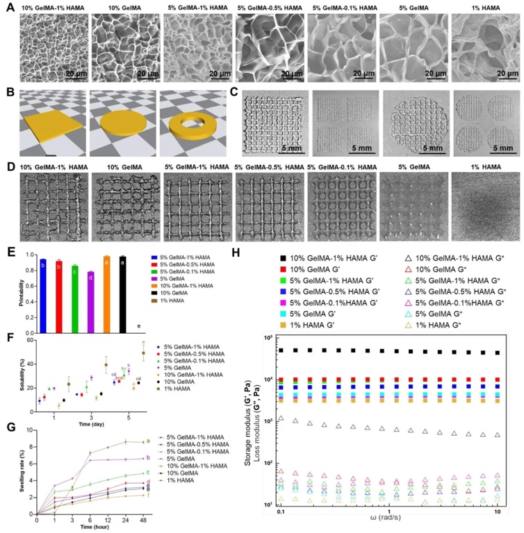 HAMA水凝胶打印性能良好,适合用于后续研究。