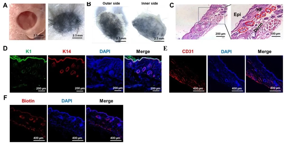 皮肤作为人体重要器官,一旦完整性受损形成伤口,不仅会给患者带来痛苦,增加感染风险,还会对生活质量造成严重影响,全球先进伤口护理市场规模庞大,寻找高效治疗手段迫在眉睫。当前,大面积皮肤创伤的治疗方式,如自体皮肤移植存在供体部位有限、易感染等问题,而人工皮肤替代品也无法实现包括毛囊、汗腺、血管和皮脂腺等皮肤附属器的完全功能性、无瘢痕再生。毛囊作为皮肤重要附属器,在抵御外界刺激、促进伤口愈合等方面意义重大,但利用真皮乳头细胞进行组织工程存在获取困难、体外培养时再生潜能难以维持等局限。