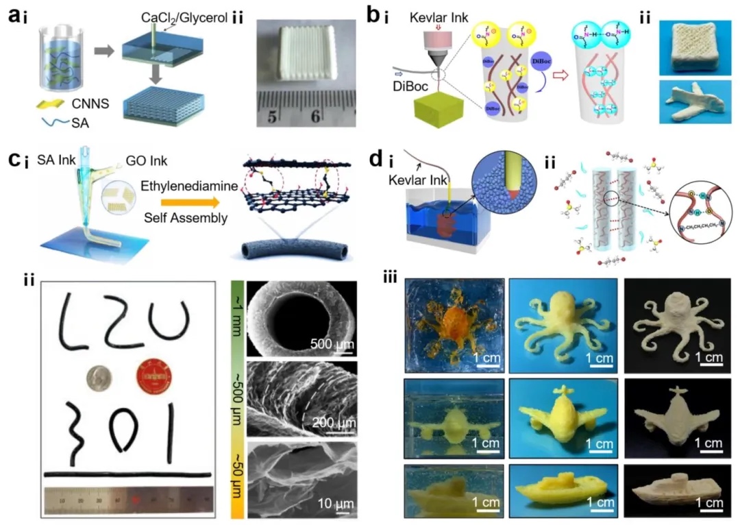 凝胶打印在打印过程中转变,分物理和化学两种方式,可实现复杂结构打印;凝胶打印在打印前完成转变,能利用现有凝胶体系。