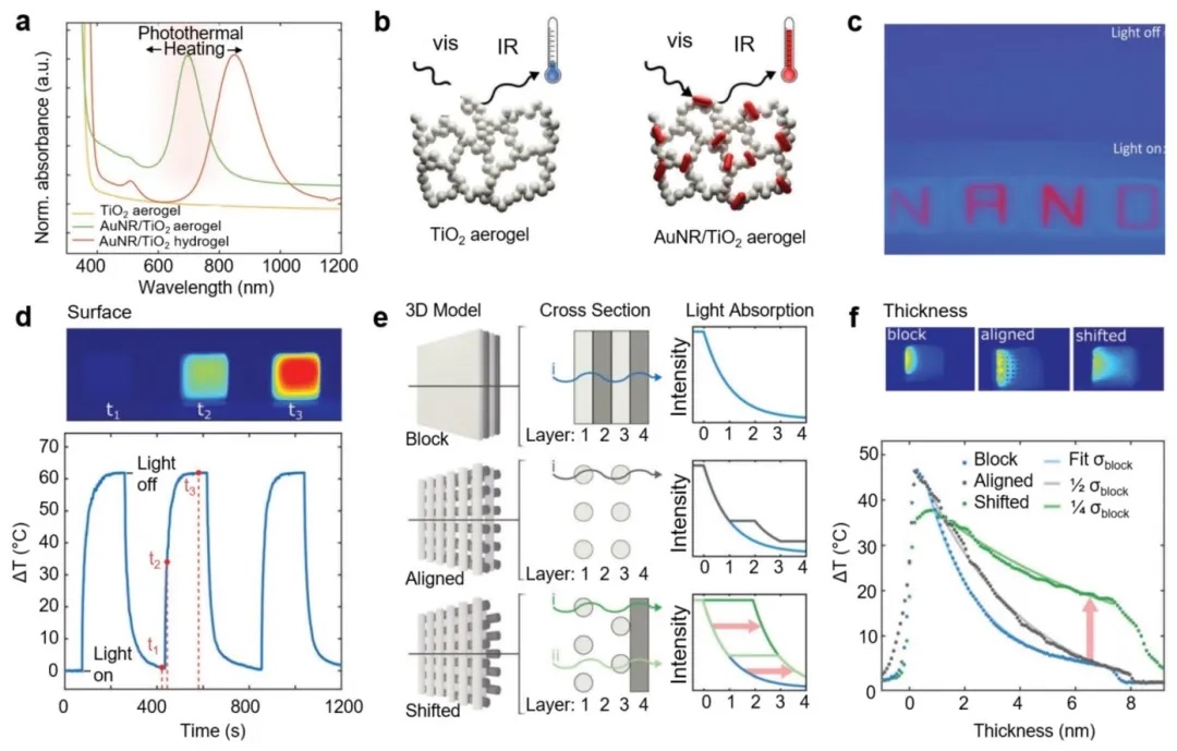 - 光学性能:通过光学测试和结构表征,研究光与气凝胶的相互作用。发现气凝胶的光学性能与纳米构建块大小、结构有关,可通过调整结构调控光的吸收、散射和透射。如3D打印的Au - 纳米棒TiO2胶体气凝胶在可见 - 近红外范围内有强消光特性。