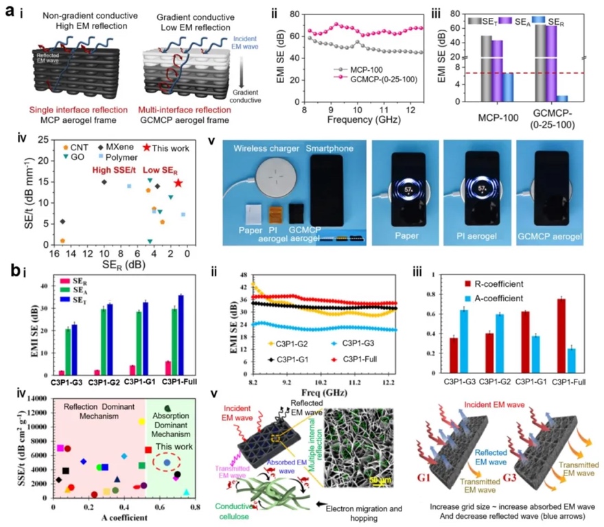 - 电磁屏蔽性能:分析3D打印胶体气凝胶对电磁波的反射、吸收和多次内部反射损耗机制,研究发现通过结构设计和材料选择可提高电磁屏蔽效率。如3D打印的过渡金属碳化物/碳纳米管/聚酰亚胺(GCMCP)胶体气凝胶具有良好的电磁屏蔽性能。