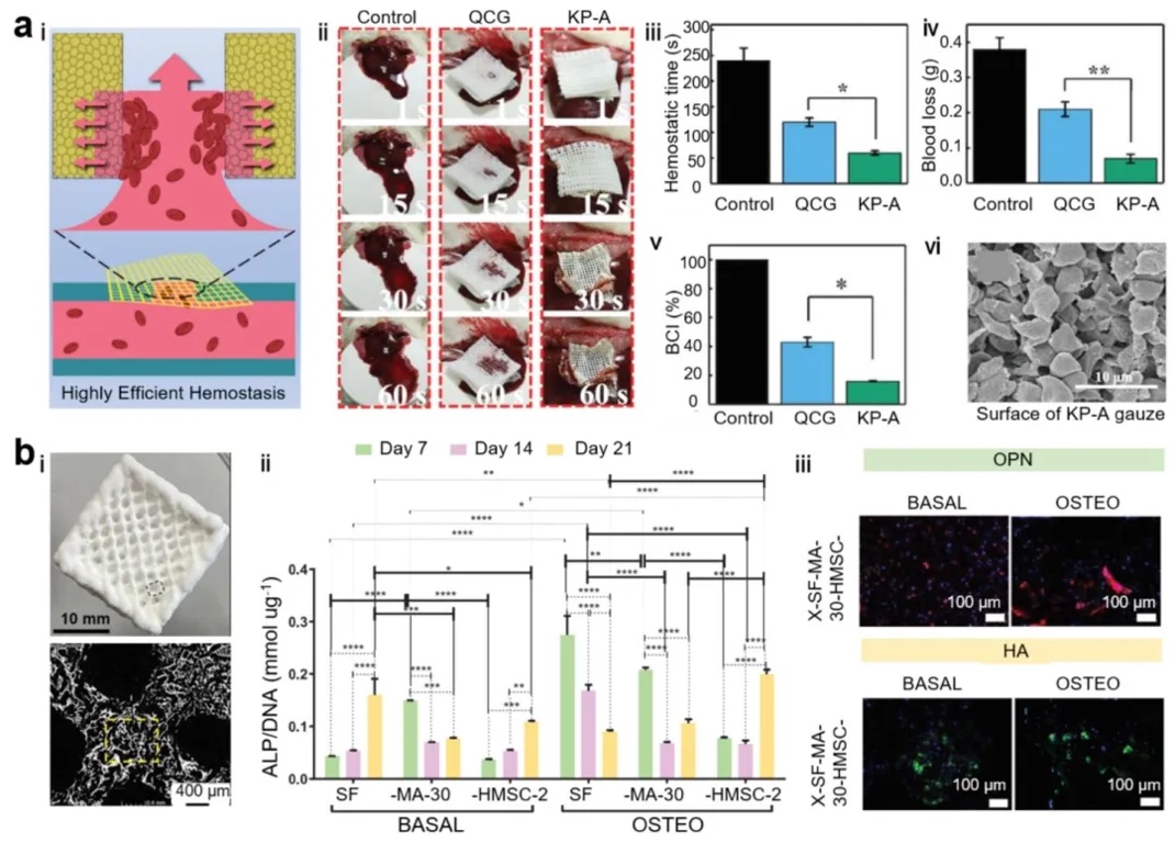 - 生物工程:以3D打印的Kevlar/PVA胶体气凝胶和丝素蛋白胶体气凝胶为例,通过体内动物实验和细胞培养实验,研究发现它们在生物工程领域有应用前景,如高效止血和促进骨组织再生。