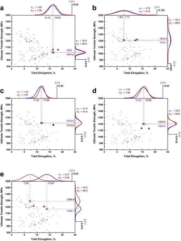 其中,EHVI 函数发挥了关键作用。它巧妙地在探索高不确定性区域与开发高预测性能区域之间寻找到了平衡,成功克服了长期以来困扰行业的强度 - 延展性权衡难题。