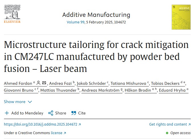 相关研究以题为“Microstructure tailoring for crackmitigation in CM247LC manufactured by powder bed fusion – Laser beam”的论文发布在《增材制造》期刊上。