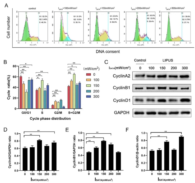LIPUS 应用上,虽然确定了促进 hUSCs 增殖的最佳参数,但不同细胞类型对 LIPUS