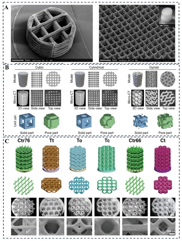 5. 血管化骨修复支架的孔结构设计:通过不同实验对比了不同打印技术和不同孔形状、形貌的支架对细胞分化和功能的影响。结果表明,孔大小、纤维丝直径和孔形貌均会影响细胞行为和支架功能,合理设计孔结构可实现促进成骨和血管生成的双重功能,为支架设计提供了重要参考。