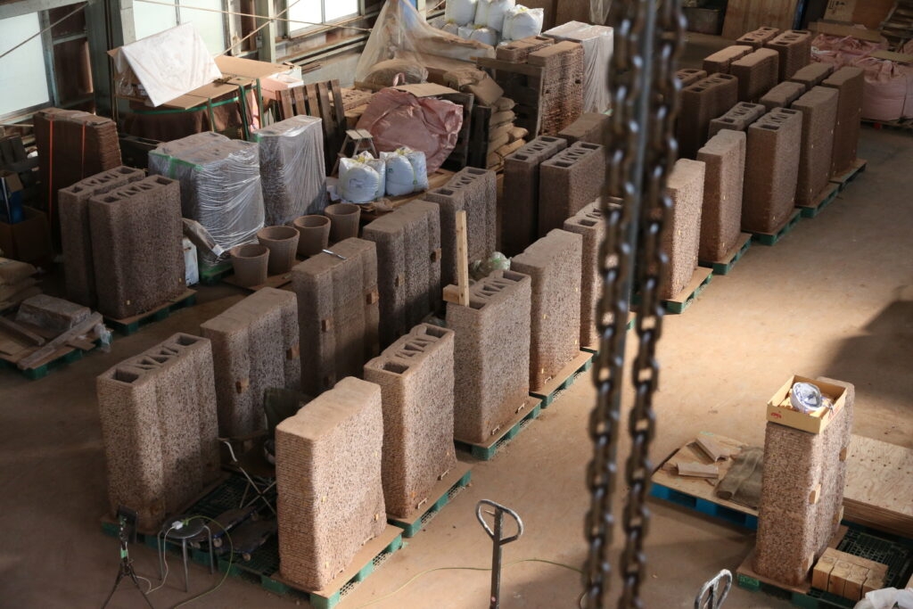 WASP是一家专注于建筑3D打印技术的意大利公司,为本设施的建造提供了关键设备——大幅面建筑打印机,用于打印多种核心构件,包括预制外墙板、花坛式长凳、模块化土坯和圆柱形洗脸盆等。所有部件均以一种土基复合材料打印成型,这些材料由粘土、稻草、海藻胶、天然颜料以及氧化镁硬化剂按比例混合而成。该项目配方不仅具备良好的可打印性和机械性能,还与日本传统土墙的建造工艺高度契合,体现了对在地建造文化的延续与回应。
