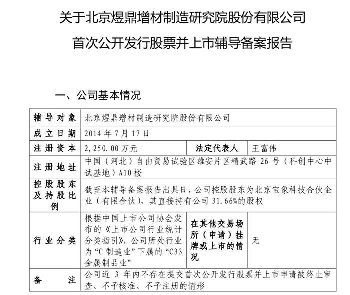 导读:在业内很少露面的金属3D打印隐形龙头厂商煜鼎增材,竟然快要IPO了,南极熊估计煜鼎增材2024年的营业收入在4~6亿元左右。2025年4月25日,近日北京煜鼎增材制造研究院股份有限公司(简称“煜鼎增材”)在河北证监局完成IPO辅导备案,辅导机构为国信证券。