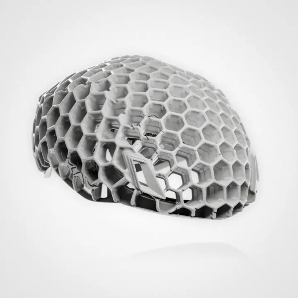 KAV Rhoan头运用3D打印和粉末床熔合技术,打造出能精准贴合每位骑行者头型的头盔。