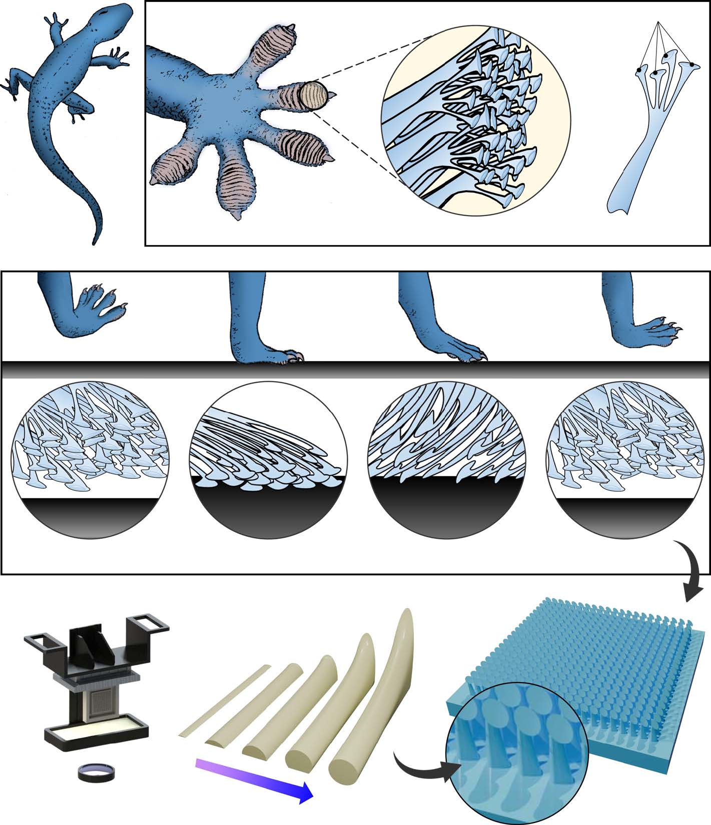 中使用过度固化来创建模仿壁虎刚毛的各向异性粘合剂表面完全符合这个不断发展的领域,将仿生学从视觉相似推向功能模拟。