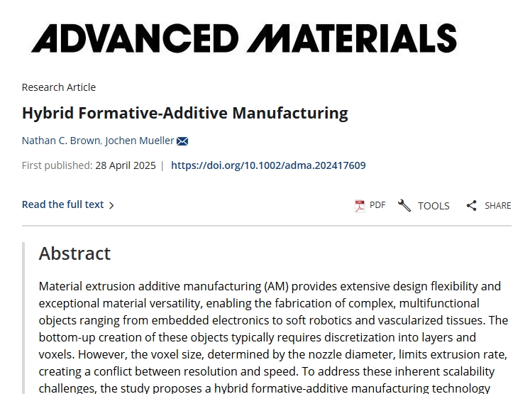 CaSE的助理教授兼主要研究作者Jochen Mueller解释道:“我们并未将增材制造和成型制造视为相互竞争的技术,而是探索如何将二者的优势融合。通过这种融合,我们不仅创造了一种全新的生产方法,而且克服了它们各自的局限性。”