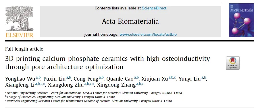 pore architecture optimization”为题发表在《Acta Biomaterialia》上。