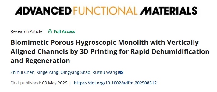 Printing for Rapid Dehumidification and Regeneration”为题发表在《Advanced