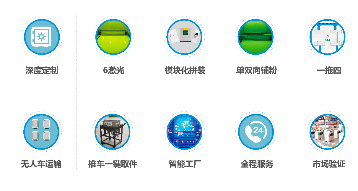 CR-M460装备标配6激光、选配8激光,打印速度较4光设备再提升30%以上,单品制造成本再降低20%;组件模块化安装,显著提升运输和安装效率;可变单双向铺粉,适应不同周期制造需求;粉末循环一拖四系统,显著提高供粉、清粉效率;全场可采用无人车运输,方便、快捷、高效;装配式基板拆卸小推车,显著提升打印件取送效率;拥有完全自主知识产权的智能控制系统、监测系统、MES系统,一键管控订单、生产、资源、人员全过程;勘测、规划、设计、安装、调试、运维,国家标准、政策申报等一站式服务,以更低成本、更高效率、更优质量,协助客户完成智能工厂建设,全方位解决客户的核心痛点。