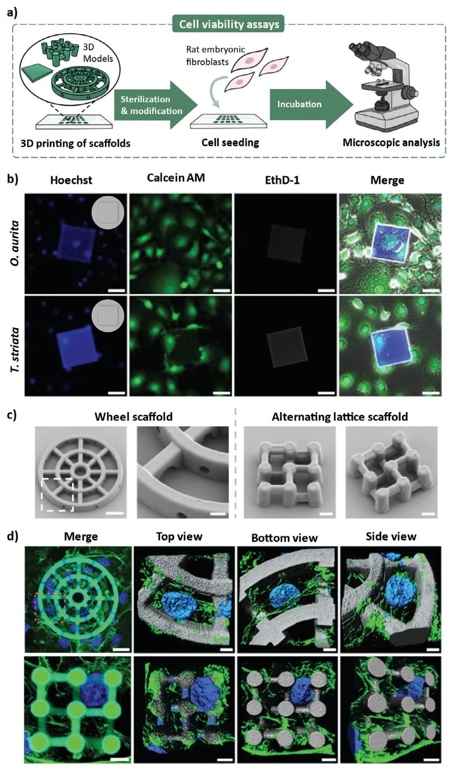 aurita和T. striata,其提取物功能化后可作为打印墨水,且打印的3D结构具有良好生物相容性。