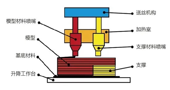技术以其较低的成本和操作的便捷性成为最普及的增材制造技术之一。该技术将热塑性塑料丝材通过喷头加热熔化,然后按照预设的路径挤出并逐层堆积成型。由于其成型原理和材料特性,FDM