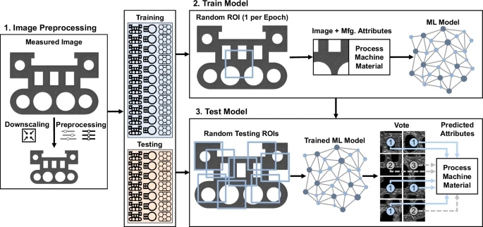 在实验中,团队使用21台商用3D打印机生产了9192个零件,覆盖四种主流增材制造工艺:数字光合成(DLS)、多喷射熔合(MJF)、立体光刻(SLA)和熔融沉积成型(FDM)。每个零件都通过平板文档扫描仪以5.3微米/像素的高分辨率扫描,构建出详尽的图像数据库供模型训练与验证使用。