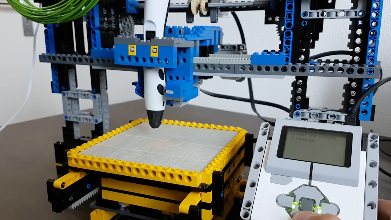 ,已停产的乐高头脑风暴套件中的电机(通常用于编程机器人及其他电子设备)驱动打印所需的精确运动。创作者成功地将3D打印笔适配到这个乐高装置上,确保机器可以融化并挤出