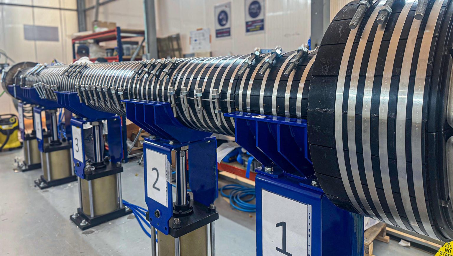 据开发团队介绍,3D 打印还有助于验证从磁束顶部延伸出的 36 条冷却水管的位置,这对于管理等离子体实验的热量至关重要。3D打印的其他原型,包括铜质电汇流条和各种支撑结构,使团队能够在生产开始前进行精确调整。铜汇流条的实际制造已经开始,使用的是PPPL车间的一台OMAX水射流机。
