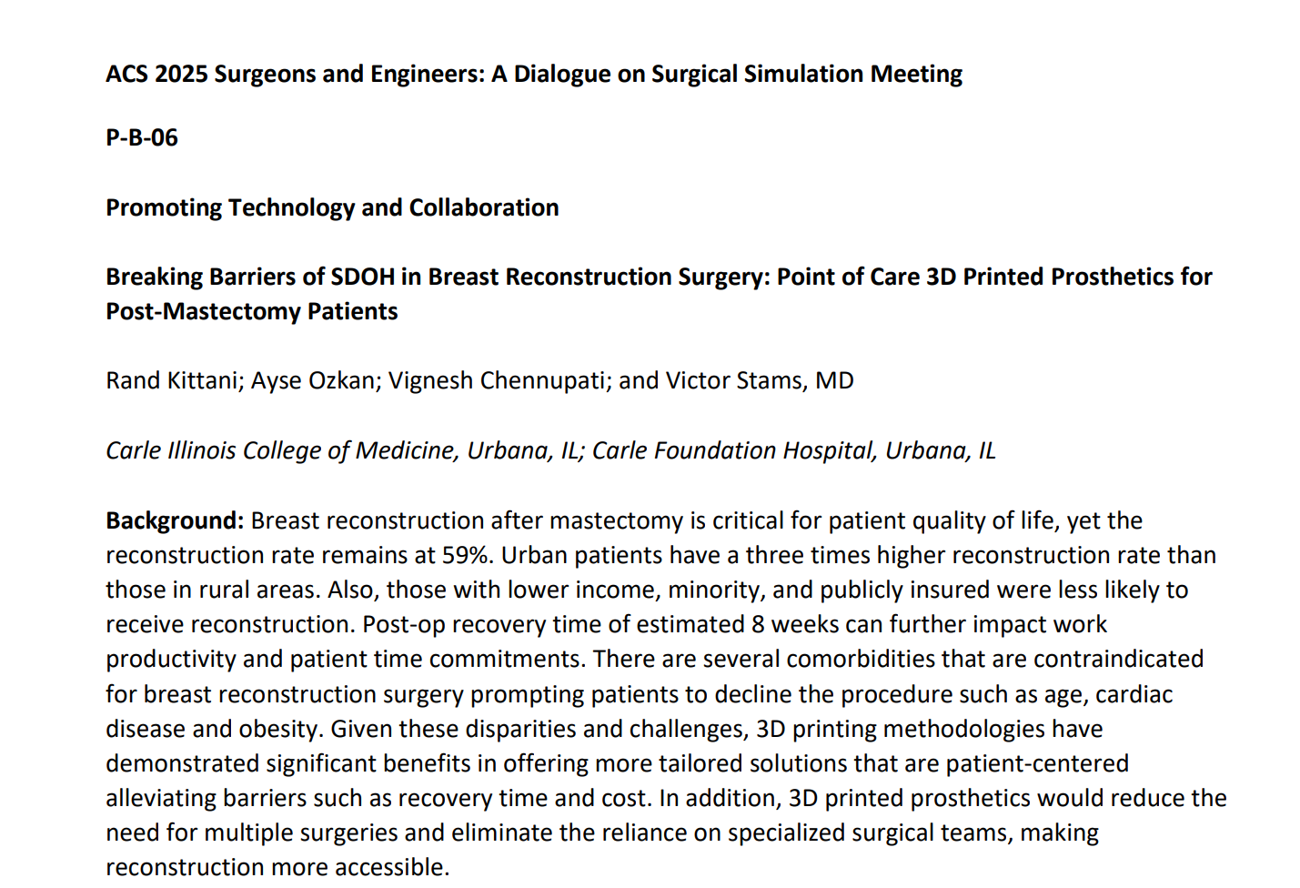 此项目由CI MED临床科学教授兼Carle Health整形外科医生Dr. Victor Stams主导,并与CI MED学生Rand