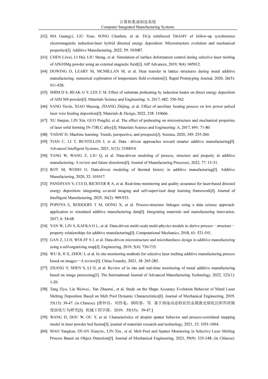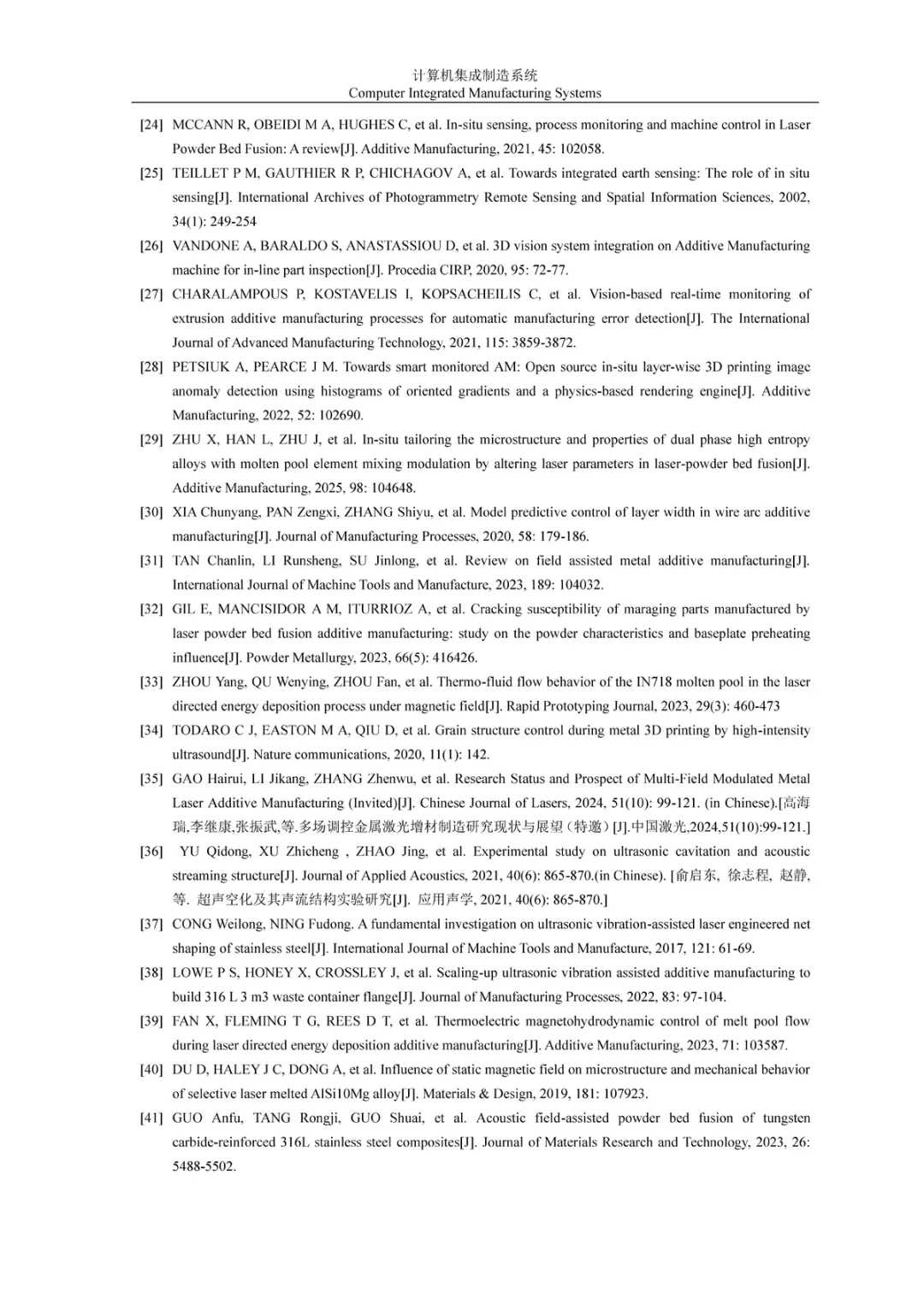 杨伟东,高黄平,赵雨濛,王媛媛,朱东彬.激光金属增材制造过程的质量控制研究综述[J/OL].计算机集成制造系统.https://doi.org/10.13196/j.cims.2025.0104