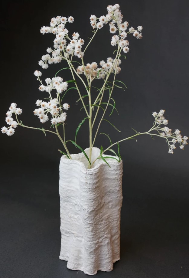 △由Mycofluid 糊剂制成的 3D 打印花瓶。