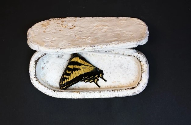 △专为蝴蝶标本设计的 3D 打印容器,由 Mycofluid 糊剂制成。