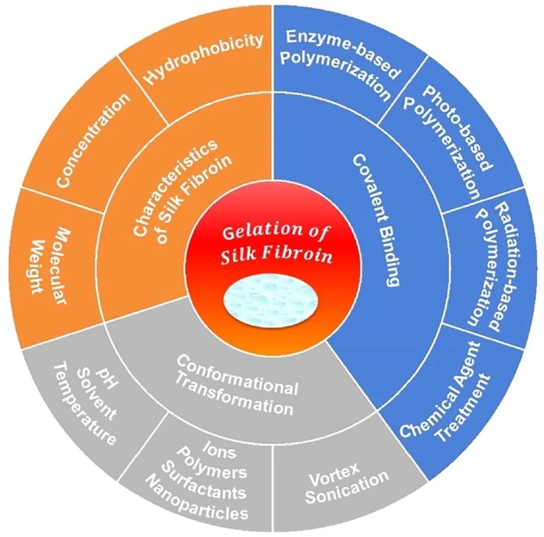图4. 调节丝素蛋白水凝胶凝胶动力学的方法示意图。