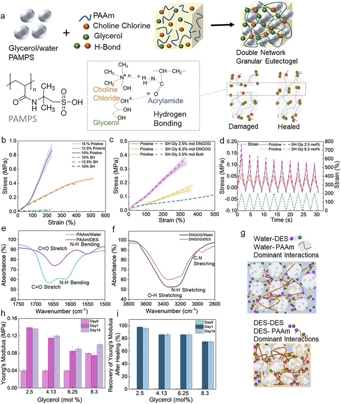 DNGOG的杨氏模量为0.13 MPa,拉伸断裂应变达510%。其自修复能力源于DES中甘油羟基与胆碱 chloride