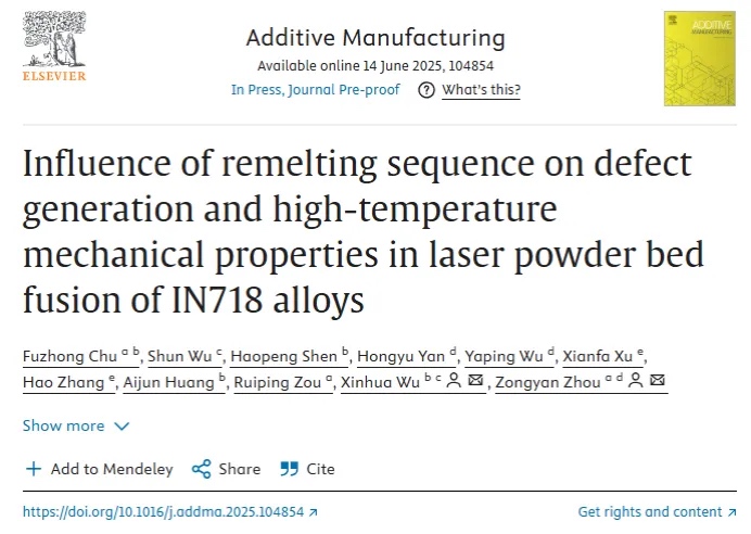 IN718 alloys”发表在国际增材制造顶刊Additive Manufacturing上。