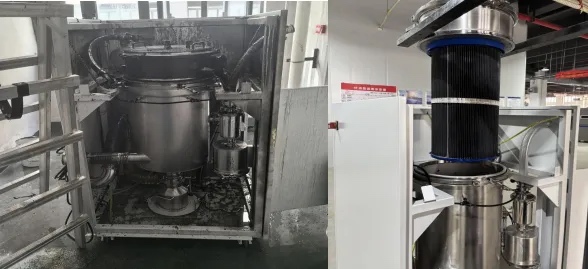 烟间途中,与未完全开启的防火门发生多次碰撞,碰撞致使部分吸附在过滤柜滤芯内部、筒壁的钛合金粉脱落形成粉尘云。由于滤筒盖子较重,拆卸后的滤芯未能垂直提升,向一侧位移倾斜,滤芯底部金属件与钢筒壁接触摩擦产生火花,引燃内部粉尘云,粉尘闪燃导致3