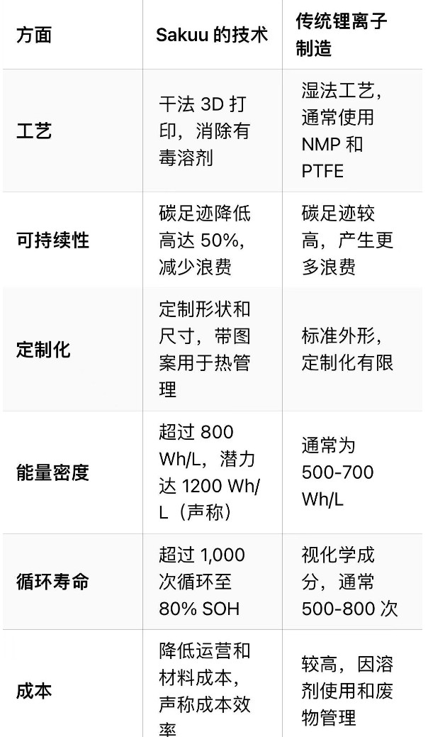 - 行业首创:Sakuu 声称实现了多个行业首创,包括第一个完全功能性的打印锂金属电池、第一个打印的图案化锂金属阳极和第一个定制外形的打印锂金属电池。