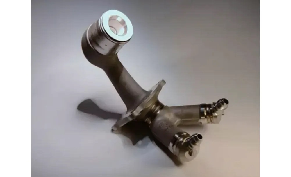 T25传感器外壳。GE航空公司还采用激光增材制造技术制造了新一代的LEAP喷气发动机燃油喷嘴(图5),并于2015年服役。