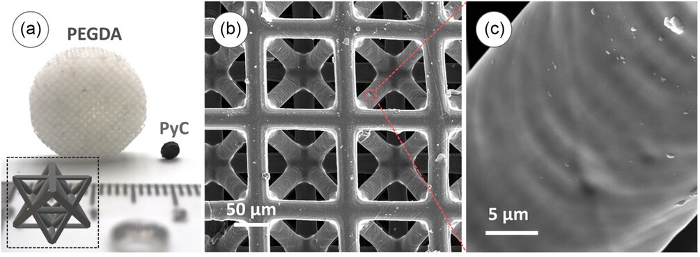 2025年7月23日,IMDEA材料研究所研究人员的一项新研究取得了再生医学的突破,证明了3D打印碳微晶格作为骨组织工程结构可调支架的潜力。具体而言,碳支架采用3D打印聚乙二醇二丙烯酸酯(PEGDA)结构制造,并通过高温处理转化为热解碳(PyC)。