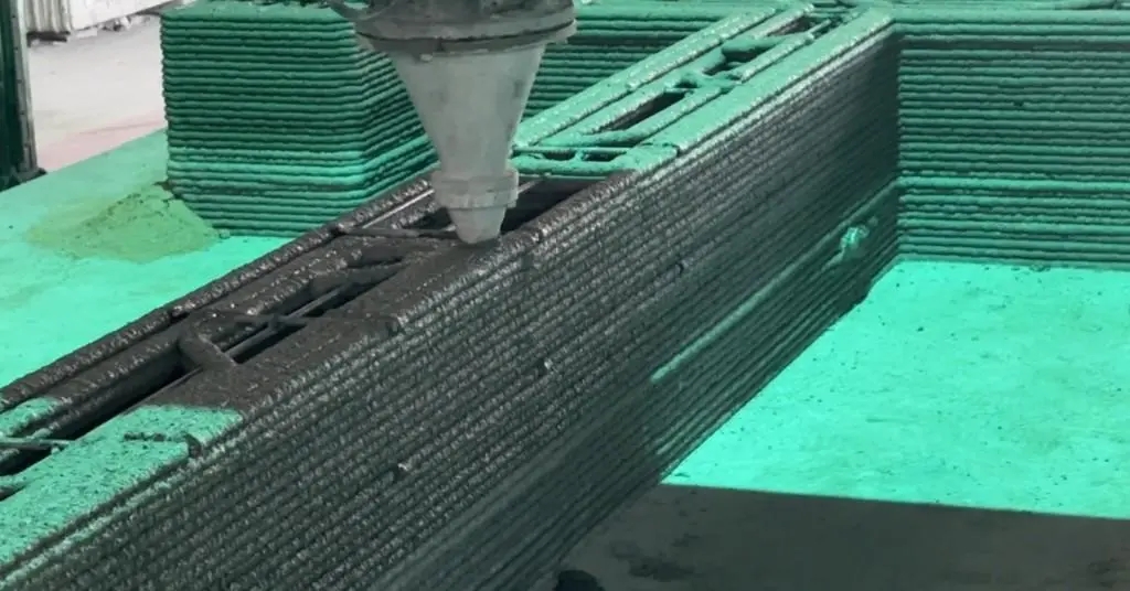 在材料应用上,3D打印开发中心对钢渣进行了高值化利用,让工业固废“变废为宝”。这不仅践行了环保理念,更有效解决了工业固废处置难题。经检测,采用3D打印工艺制造的墙体,其混凝土抗压强度达到了C30标准。