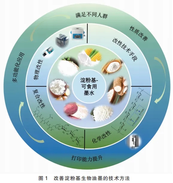 淀粉作为人体主要食物中的碳水化合物来源,其流变特性与3D打印适配性直接决定了打印精度、结构稳定性和吞咽安全性。作为一种可消费的植物性食品,良好的流变特性对于呈现良好的3D打印效果至关重要。比如:淀粉基凝胶的屈服应力、表观黏度和流动指数等指标会显著影响挤出过程。另一方面,3D打印物体的自支撑能力在很大程度上取决于剪切模量。天然淀粉独特的流变特性,为3D食品打印提供了很高的适用性,然而其也表现出对热、压力和剪切敏感以及储存后回生等问题,导致其应用具有一定的局限性。为了扩大淀粉基油墨的应用范围,可以通过各种改性技术来改善其性能,包括:物理、化学改性、复合改性等,这可能涉及改变淀粉的分子特性和结构,从而使其更适合3D打印。