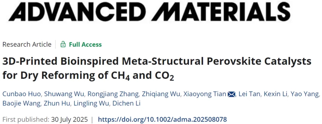随着增材制造技术不断拓展其在功能材料与能源催化领域的边界,3D打印在高性能催化剂结构设计方面迎来了新突破。近日,西安交通大学李涤尘、田小永教授团队联合化工学院吴志强教授,成功研制出一种仿生超结构的3D打印钙钛矿催化剂,其在结构可控性、传质效率和长期稳定性方面显著优于传统制造的粉体催化剂,相关成果以“3D-Printed
