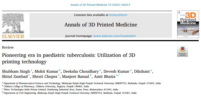 综述论文题为“Pioneering era in paediatrictuberculosis: Utilization of 3D printing technology”,发表在《Annals of 3D Printed Medicine》期刊上。